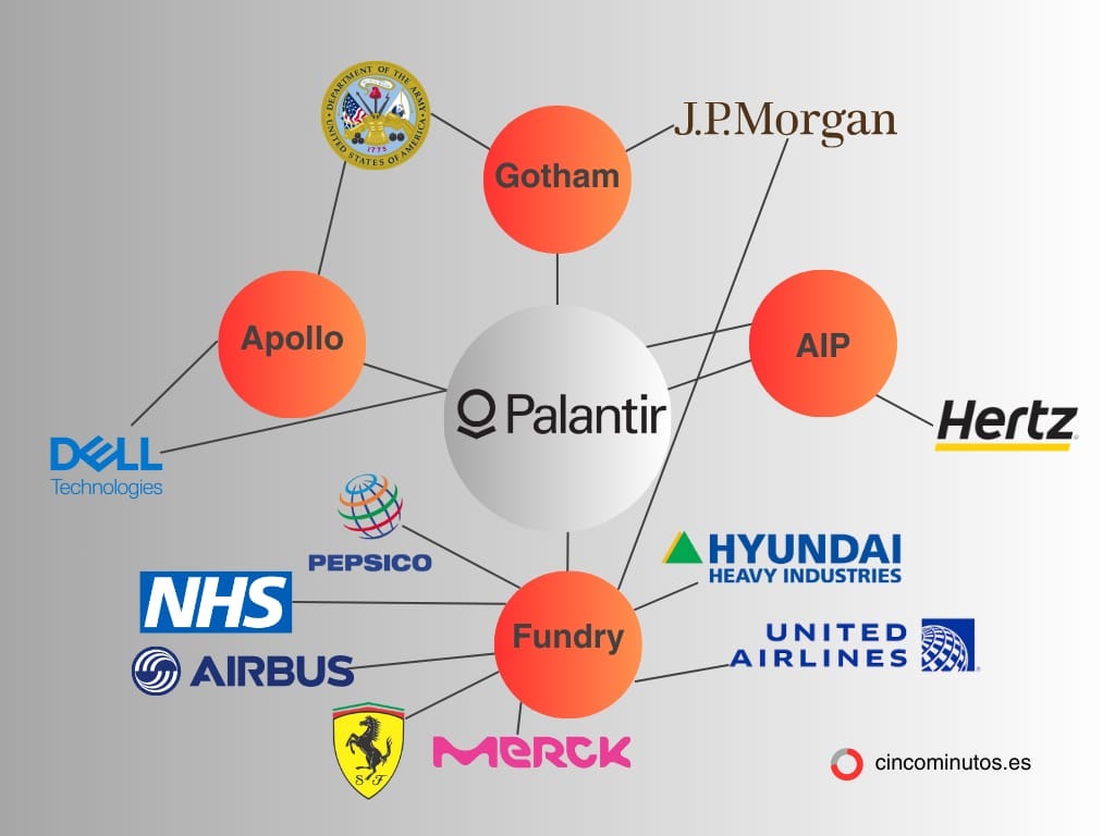 Si algo demuestra Palantir es la amplitud de su campo de acción. Pocas tecnológicas pueden presumir de estar presentes en un frente de guerra, en un quirófano británico, en el box de Ferrari, en la cadena de suministro de un refresco o en los pasillos de Wall Street. Esa diversidad de clientes ilustra la capacidad de la compañía para convertir datos caóticos en decisiones críticas en los contextos más dispares.