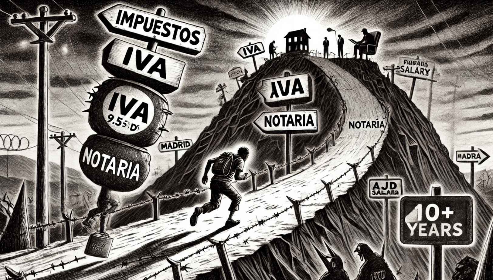 Comprar casa en España es cada vez más parecido a competir en una maratón con lastre. Hasta un 45% del precio final se pierde en la red de tributos y trámites. La cifra bate récords europeos y convierte al mercado residencial en un terreno cada vez menos accesible. Para poner números: hoy hacen falta 9,5 años de salario bruto para firmar hipoteca, más que en plena burbuja de 2007, y en regiones como Madrid o Baleares el esfuerzo supera la década.