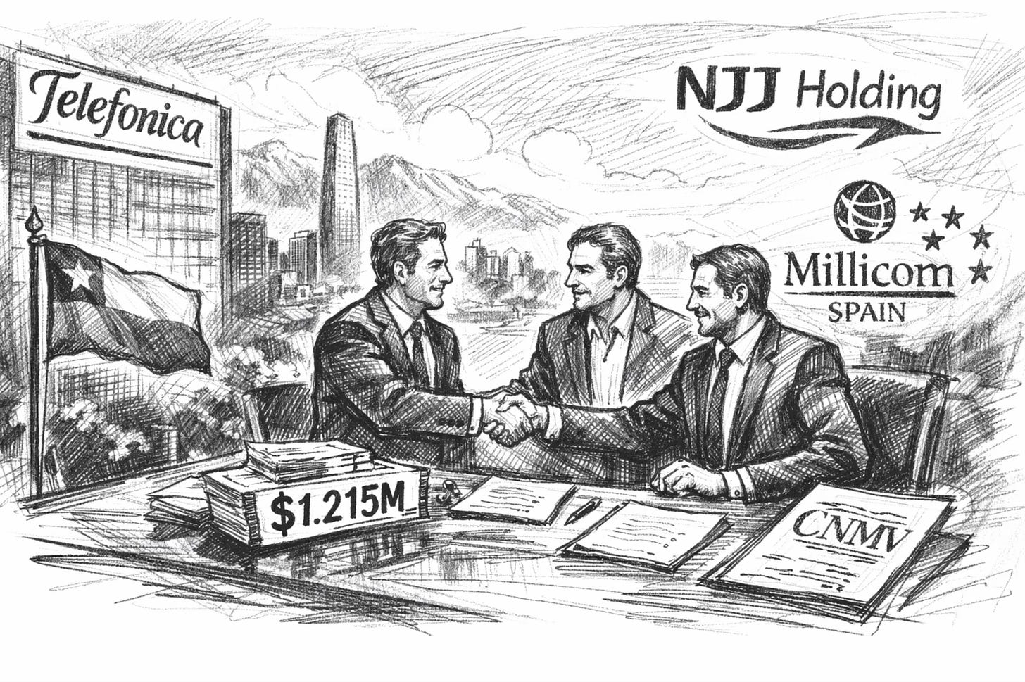 La multinacional española Telefónica ha completado una de las operaciones clave de su hoja de ruta reciente con la transmisión total de su filial en Chile. El activo pasa a manos del holding francés NJJ Holding y de Millicom Spain por 1.215 millones de dólares, en una transacción comunicada a la CNMV. El acuerdo contempla pagos condicionados a la evolución del mercado y se ha ejecutado con firma y cierre simultáneos.