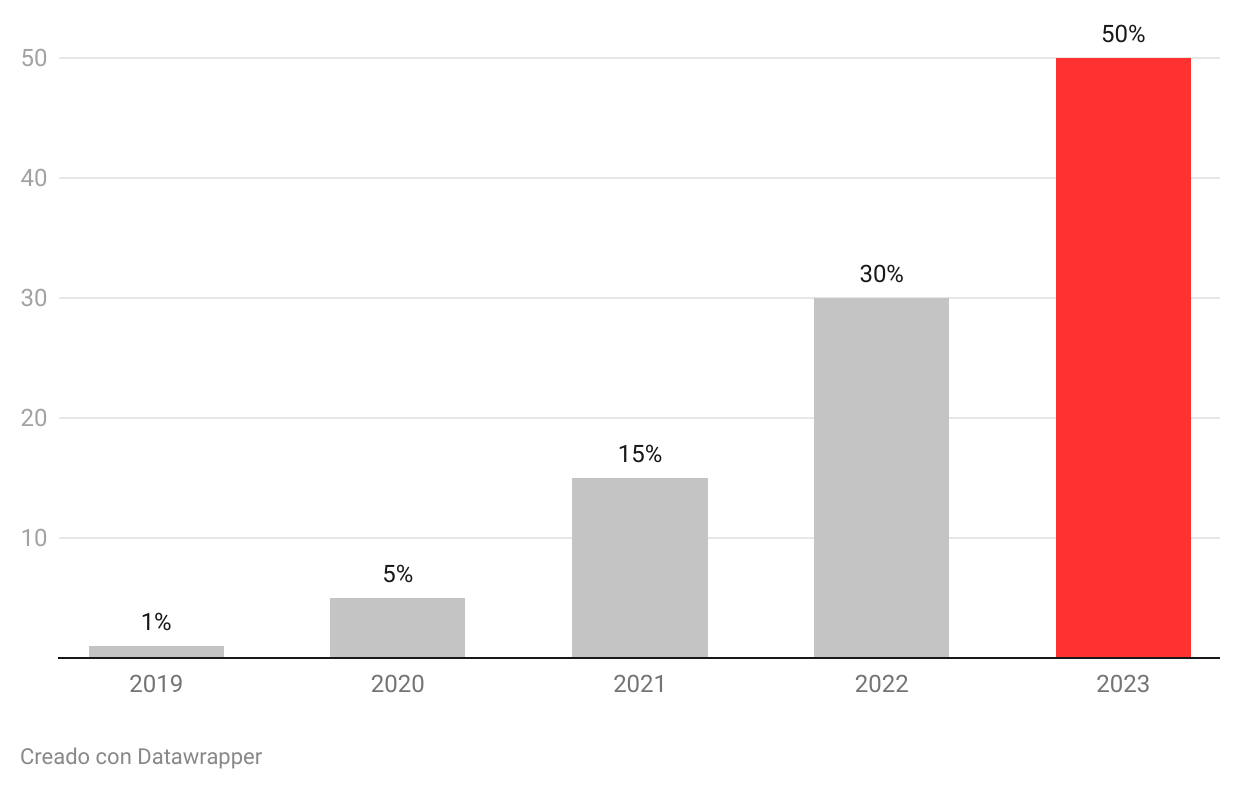 China ha incrementado significativamente su participación en las importaciones de coches eléctricos en la UE, pasando de representar solo un 1% en 2019 a más del 50% en 2023. Este crecimiento exponencial se debe a su dominio en la producción de baterías, que constituyen el 40% del costo de un vehículo eléctrico, y a su acceso a materias primas clave como el litio y el cobalto. Los automóviles eléctricos chinos son, en promedio, un 50% más económicos que los europeos, lo que ha generado preocupación en el sector automotriz de la UE. Además, las exportaciones totales de China en este sector han crecido un 150% desde 2021, consolidando su posición como principal exportador global.