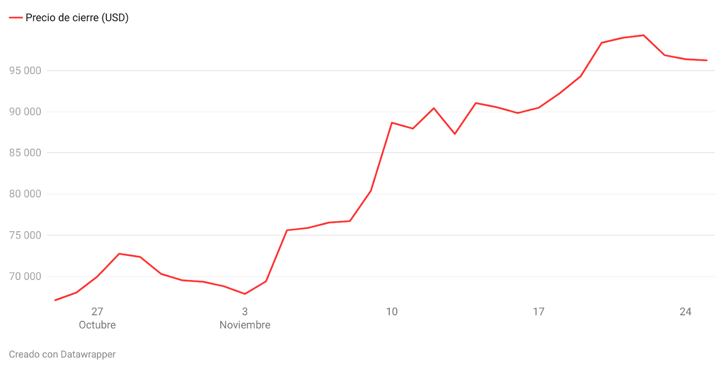 El dato. Bitcoin necesita solo un aumento del 4% desde su nivel actual para alcanzar los $100.000 por primera vez.