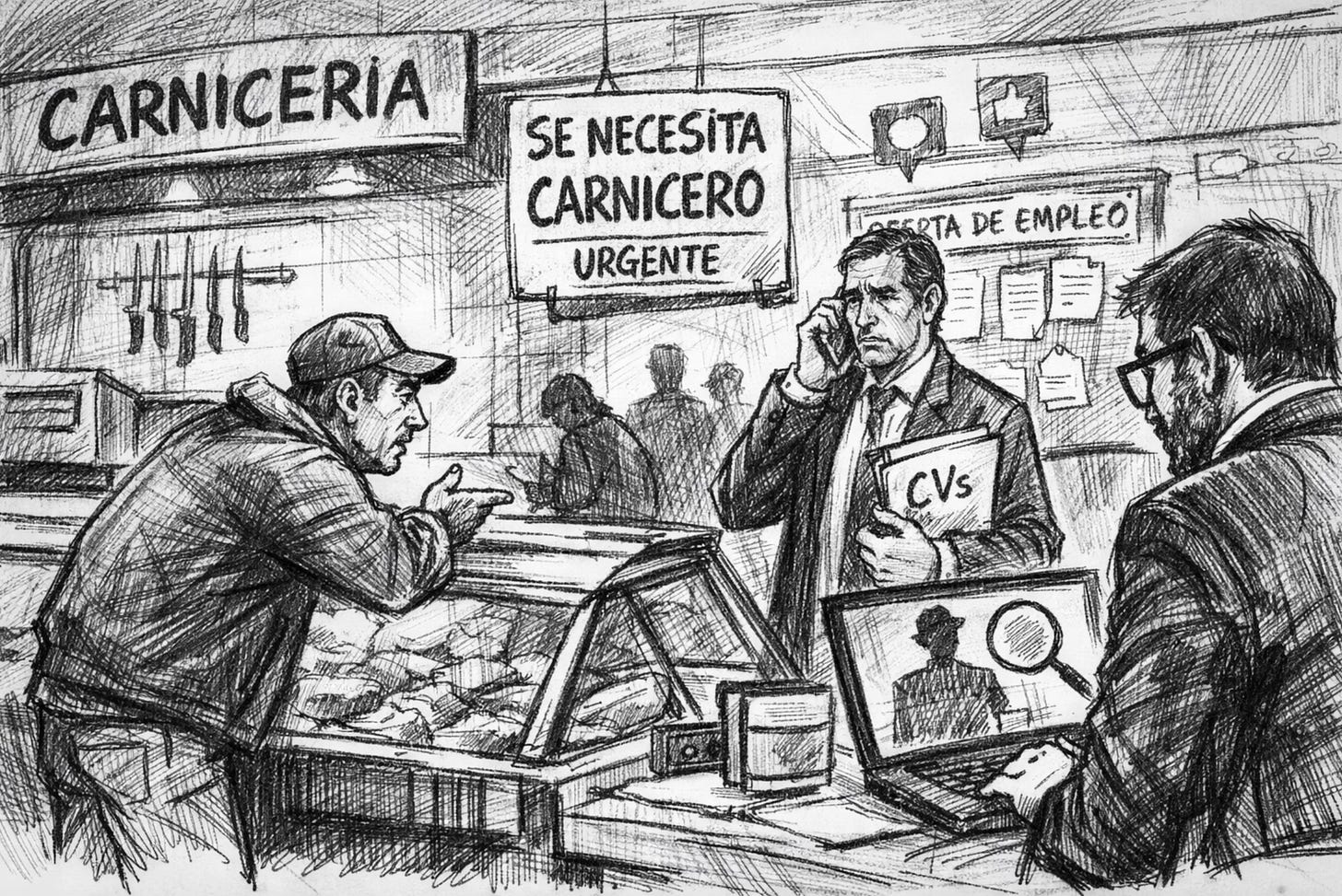 Buscar a un profesional para el mostrador de la carne se ha convertido en una odisea para algunos minoristas. Un empresario con 8 tiendas en el norte de Madrid llegó a publicar la vacante en 15 portales de empleo, tirar de redes sociales y, finalmente, contratar a un cazatalentos para intentar cubrir el puesto.