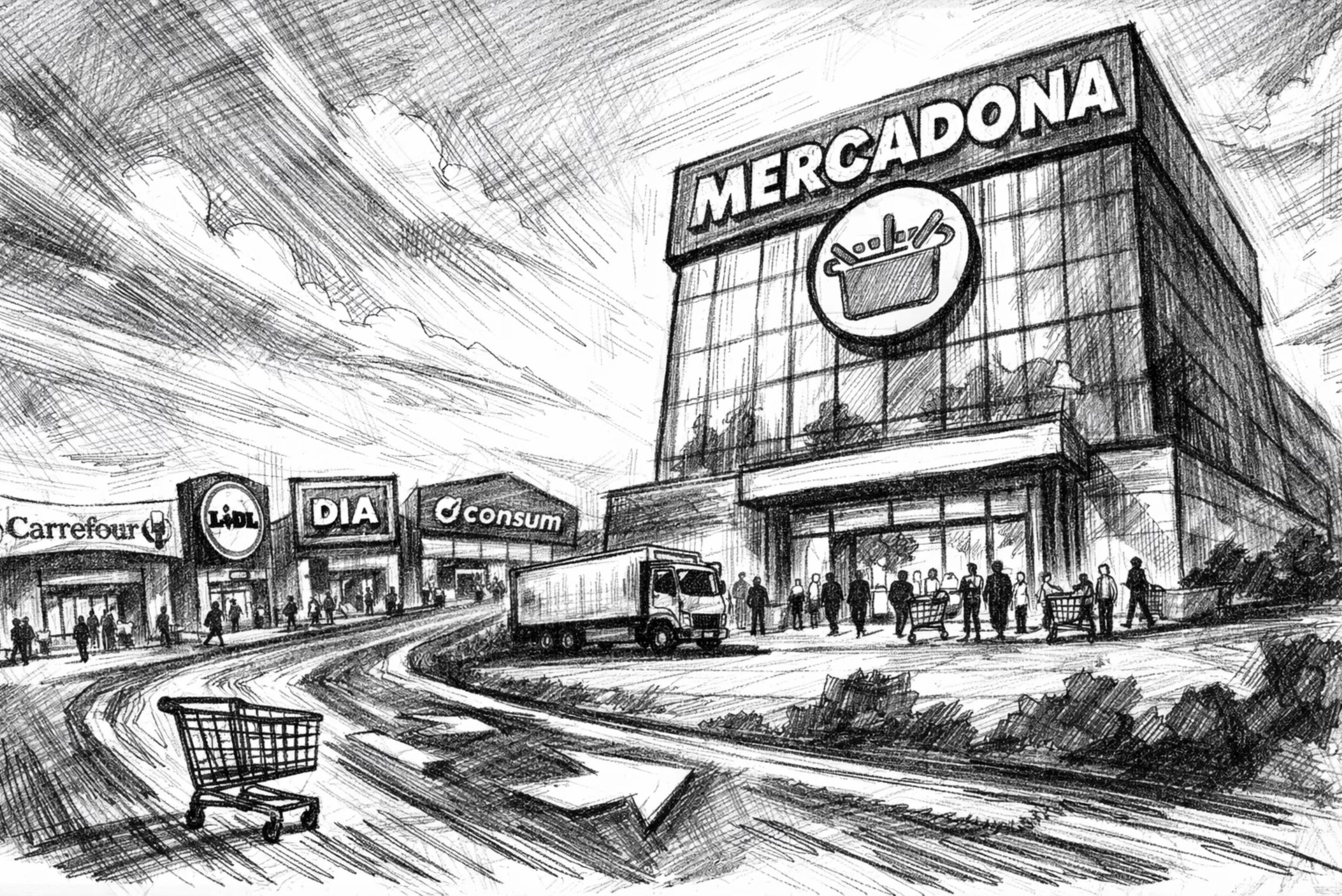 El resto del sector avanza fragmentado. Lidl se mantiene en el 6,2%, Dia en el 4,3%, Consum en el 4,1% y Alcampo en el 2,9%, con estrategias defensivas y crecimientos desiguales. El formato de supermercado grande, donde Mercadona es dominante, crece un 7,6% en ventas, frente al hipermercado, que apenas avanza un 1,2%. El resultado es un mercado cada vez más polarizado: un líder estructural y un bloque de competidores sin escala suficiente para disputarle el control del sector.