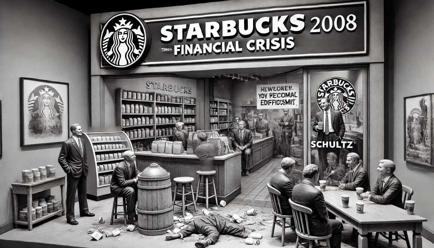 En 2008, Starbucks se encontraba en una encrucijada debido a la crisis económica global. La recesión afectó gravemente a la empresa, provocando una caída significativa en las ventas. A medida que los consumidores reducían sus gastos, Starbucks enfrentaba la dura realidad de que su modelo de negocio, centrado en un producto premium, comenzaba a perder tracción. Además, la expansión masiva que había tenido lugar bajo el mandato de Jim Donald había diluido la experiencia única que solía ofrecer Starbucks, y la marca empezó a ser percibida como una "cadena de café más", perdiendo parte de su encanto exclusivo.